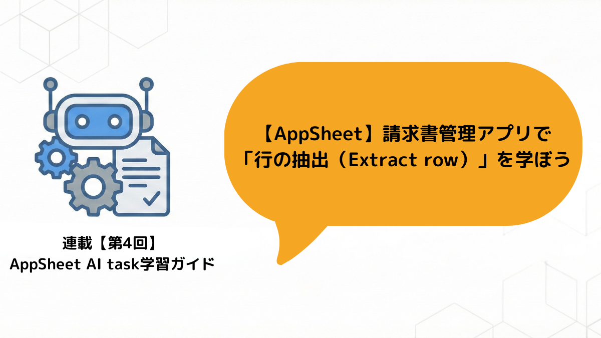 GoogleAppsScript 【AppSheet】請求書管理アプリで「行の抽出(Extract row)」を学ぼう【AI task学習ガイド④】