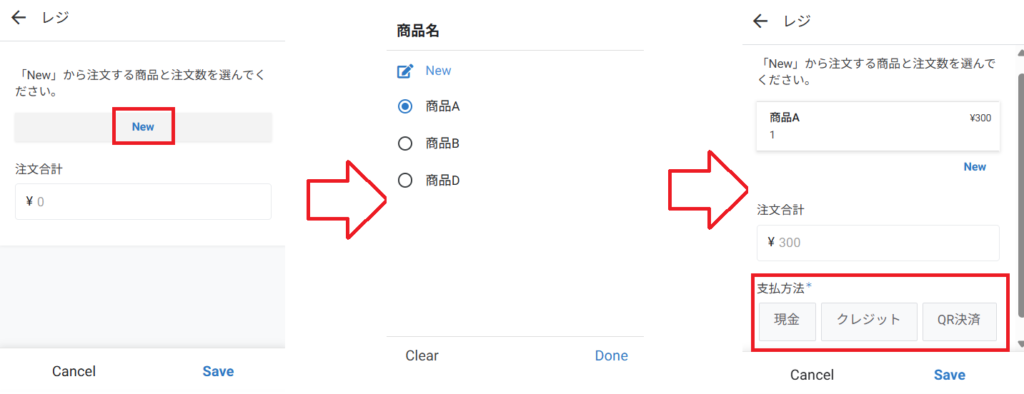 • 現場のスピードを優先して、紙のレシートを出す機能はありません。