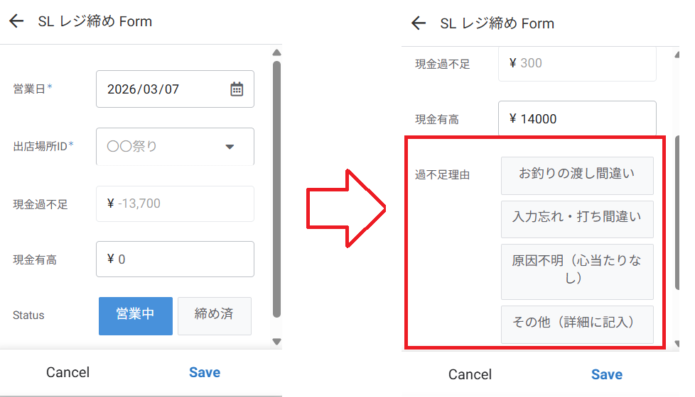1円でもズレがあるときだけ「理由」を入れる欄が出てくるようにしました。