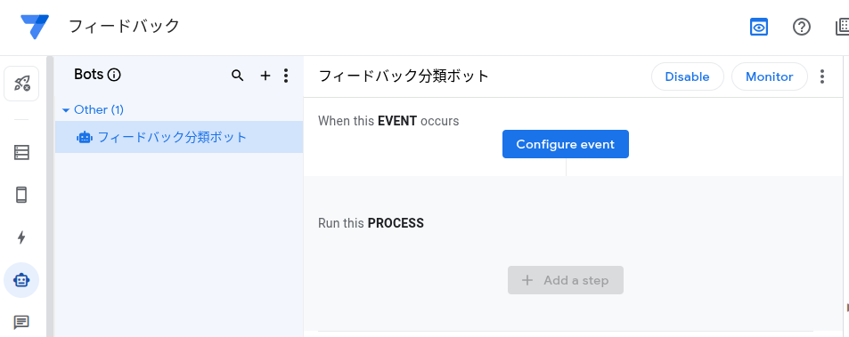- ボット名を「New Bot」から「フィードバック分類ボット」に変更しておきましょう。