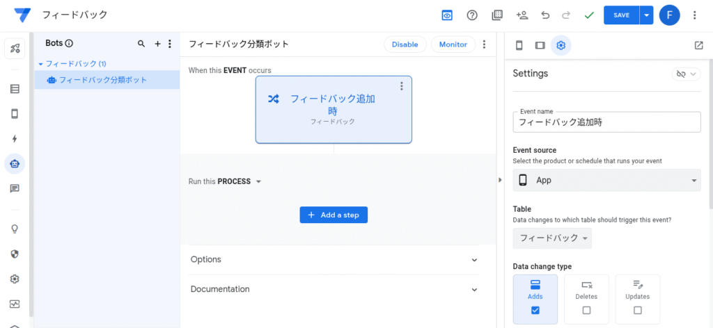 これで、「フィードバックテーブルに追加があった時だけ」動く仕組みになりました。