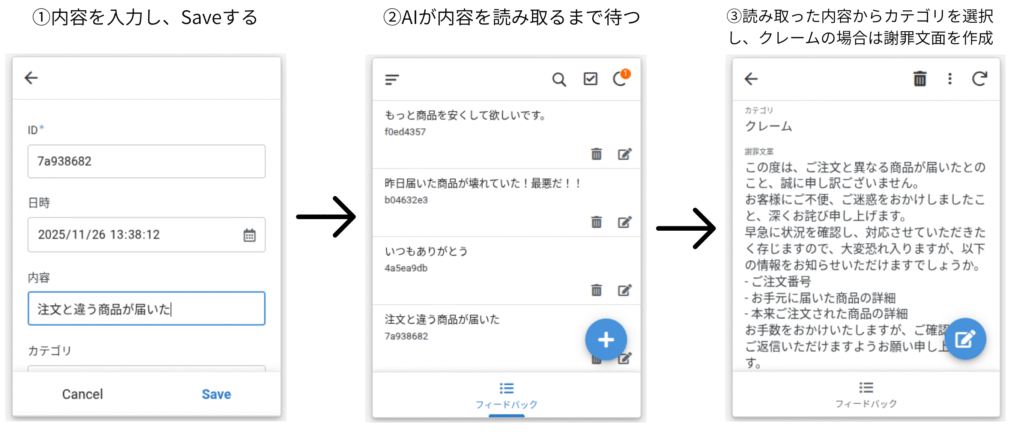 前回の記事では、ユーザーが入力したフィードバックの内容をAIが読み取り、自動的に「クレーム」や「感謝」などに分類する仕組みを作りました。
