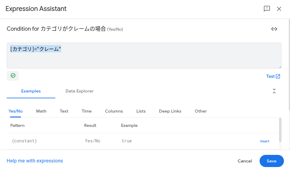 これで、ステップ1で作った分類結果で「カテゴリがクレーム」だったときだけ、「Yes」の分岐に進むようになります。