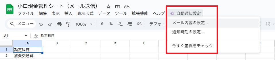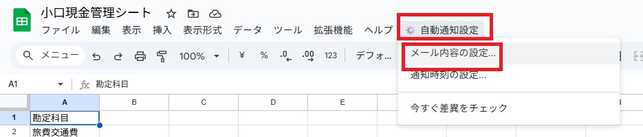 スプレッドシートに専用のメニューが追加され、そこから通知のタイミングやメールの文面を設定できる、非常に使いやすいツールが完成します。