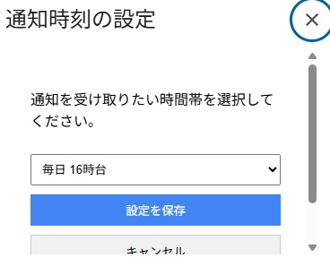 8.次に「通知時刻の設定…」を選び、通知してほしい時間帯を選んで保存します。