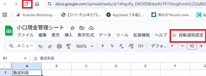 1.スプレッドシートのブラウザタブを再読み込み(リロード)してください。