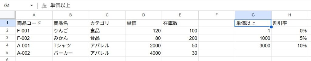 単価に応じて割引率が変わる、といったケースで役立ちます。